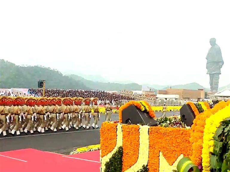Ekta Nagar : Five Shaurya Chakra awardees from the Central Reserve Police Force (CRPF) and 16 gallantry medal winners from the Border Security Force (BSF) participated in the 'Rashtriya Ekta Diwas' parade at the Statue of Unity in Ekta Nagar, Gujarat, on the occasion of Sardar Vallabhbhai Patel's birth anniversary on Friday.