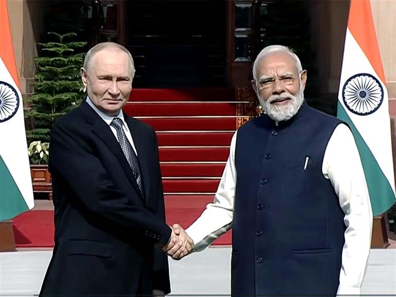 New Delhi : Prime Minister Narendra Modi on Friday warmly received Russian President Vladimir Putin at Hyderabad House in New Delhi, ahead of the 23rd India-Russia Annual Summit, underscoring the deep and longstanding partnership between the two nations.