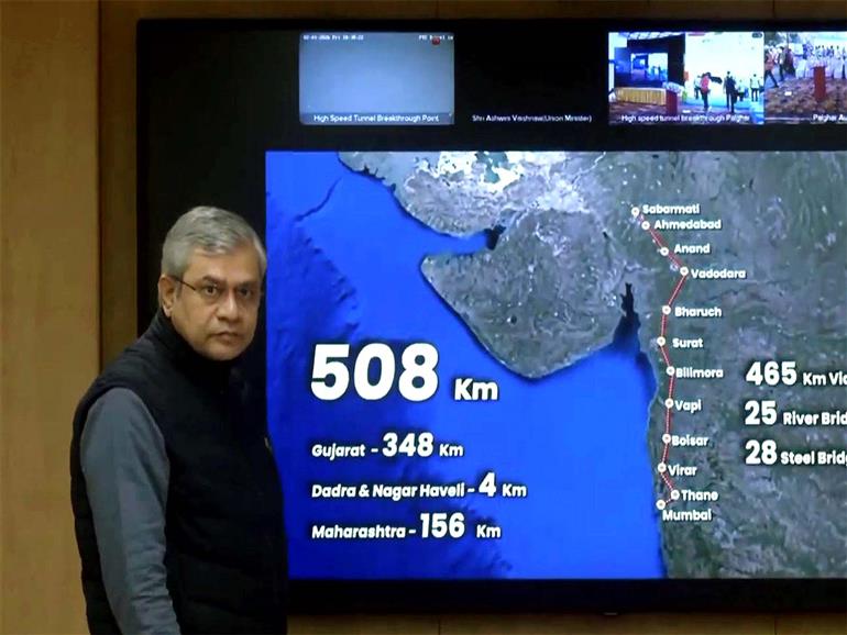 New Delhi : A significant milestone was achieved in India's first bullet train corridor with the breakthrough of a high-speed mountain tunnel at Maharashtra's Palghar, Ashwini Vaishnaw, Minister of Railways, said on Friday.