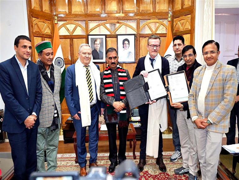 Shimla: To move closer to the goal of making Himachal Pradesh a Green Energy State, the state Chief Minister, Sukvinder Singh Sukhu, signed a Memorandum of Understanding (MoU) with M/s Geotropy India Pvt. Ltd. on Thursday.According to the Himachal Pradesh CMO, Revenue Minister Jagat Singh Negi and Ambassador of Iceland to India, Benedikt Hoskuldsson, were also present on the occasion. The MoU was signed by Chief Engineer, Directorate of Energy, D.P. Gupt, on behalf of the state government, and by Tomos Otto Hansson, Chairperson of Iceland-based GEOTROPY ehf.