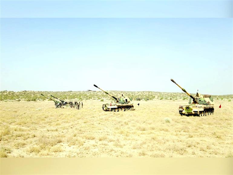 Jaisalmer: Lieutenant General Dhiraj Seth, General Officer Commanding-in-Chief of the Southern Command, reviewed the operational preparedness of Konark Corps during exercise Akhand Prahar, conducted in the Desert Sector as part of the Tri-Services Exercise Trishul.The Indian Army conducted exercise Akhand Prahar in Rajasthan's Jaisalmer.