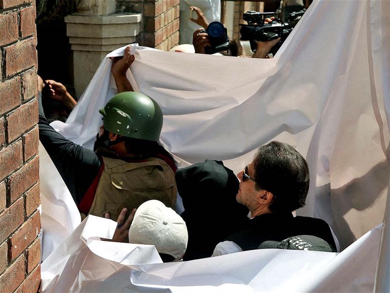 Islamabad : A local court on Tuesday extended the interim bail of PTI founder Imran Khan and his wife Bushra Bibi in cases linked to the May 9 violence, along with several other matters, while directing the former prime minister to appear at the next hearing either in person or through a video link, according to Dawn.
