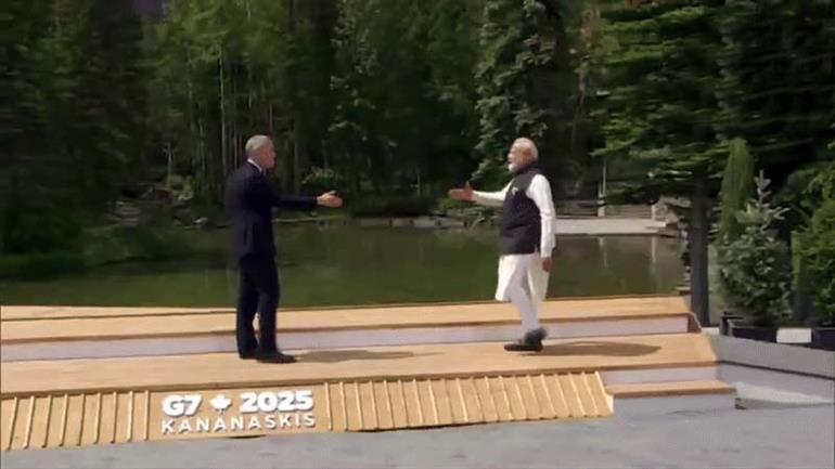 Kananaskis : Prime Minister Narendra Modi arrived at the Pomeroy Kananaskis Mountain Lodge in Canada on Tuesday to attend the G7 Summit. Canadian PM Mark Carney received PM Modi as he arrived at the venue of the G7 Summit in Kananaskis, Alberta.