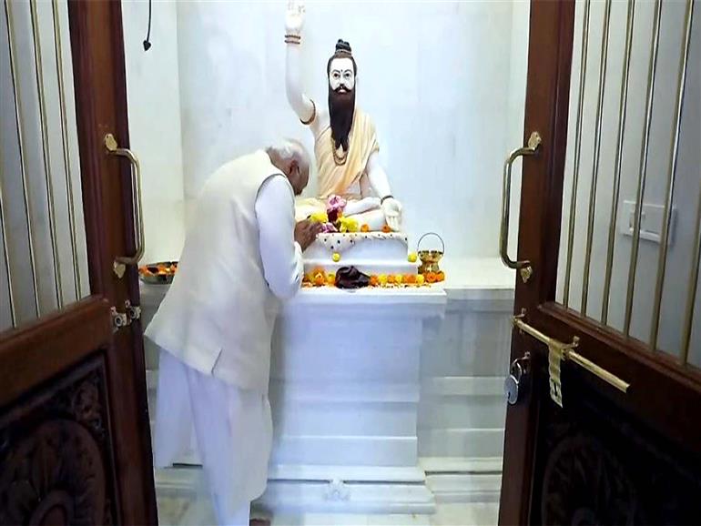 Ayodhya : Prime Minister Narendra Modi on Tuesday offered prayers at the Saptmandir at the Ram Janmabhoomi Temple premises, ahead of the flag-hoisting ceremony at the temple. The Saptmandir houses temples related to Maharshi Vashishtha, Maharshi Vishwamitra, Maharshi Agastya, Maharshi Valmiki, Devi Ahilya, Nishadraj Guha and Mata Shabari.
