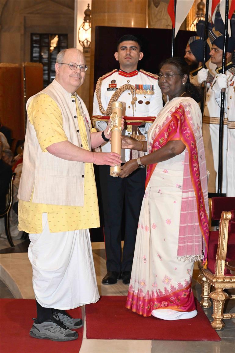 New Delhi : President Droupadi Murmu conferred the Padma Shri award in the field of Literature on Monday to American author and researcher Stephen Knapp. Knapp has been helping people from other countries understand India's spiritual depth.