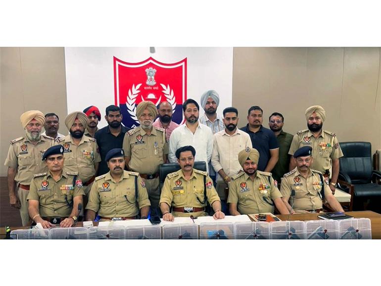 Patiala : Punjab Police on Thursday said that they have arrested four persons and recovered 10 weapons, thwarting a major crime as part of a gang war. Speaking to the media, Senior Superintendent of Police (SSP) Varun Sharma said that the police initiated the action under the 'Gangster Te Vaar' campaign.