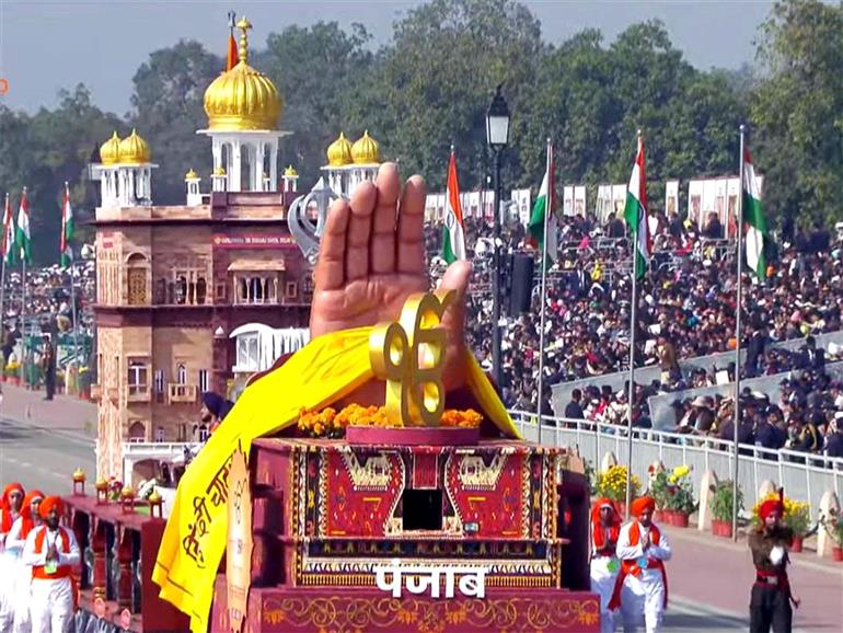 Punjab's tableau is dedicated to the 350th year of martyrdom of Sri Guru Tegh Bahadur Sahib Ji, the ninth Sikh Guru, revered as Hind Di Chadar for his supreme sacrifice in defence of human conscience, religious freedom, and justice.
