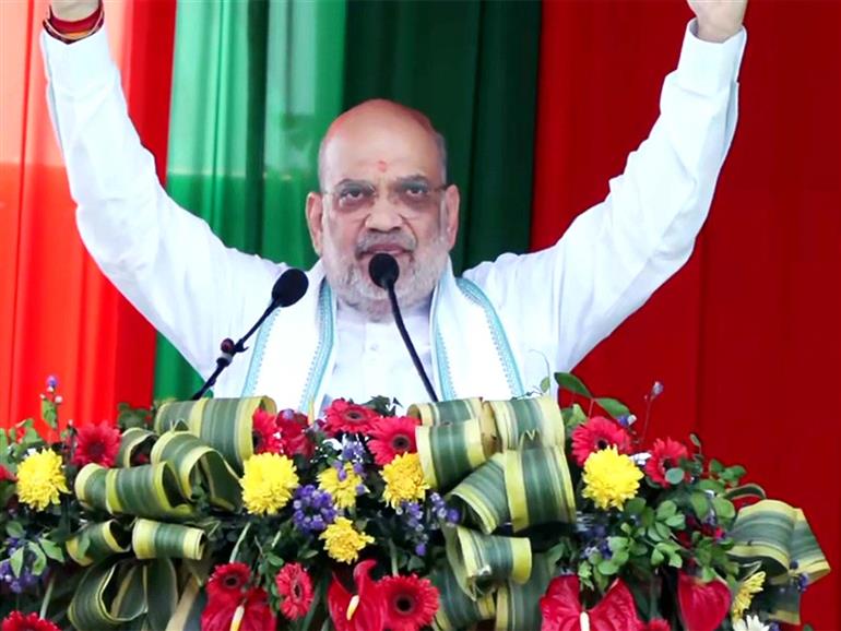 Patharkandi : Union Home Minister Amit Shah on Tuesday launched a sharp attack on the Congress during a public rally in Patharkandi, asserting that the Bharatiya Janata Party (BJP) will not allow Assam to become an "infiltrator-dominated region" and calling on voters to elect a BJP government in the upcoming Assembly elections.