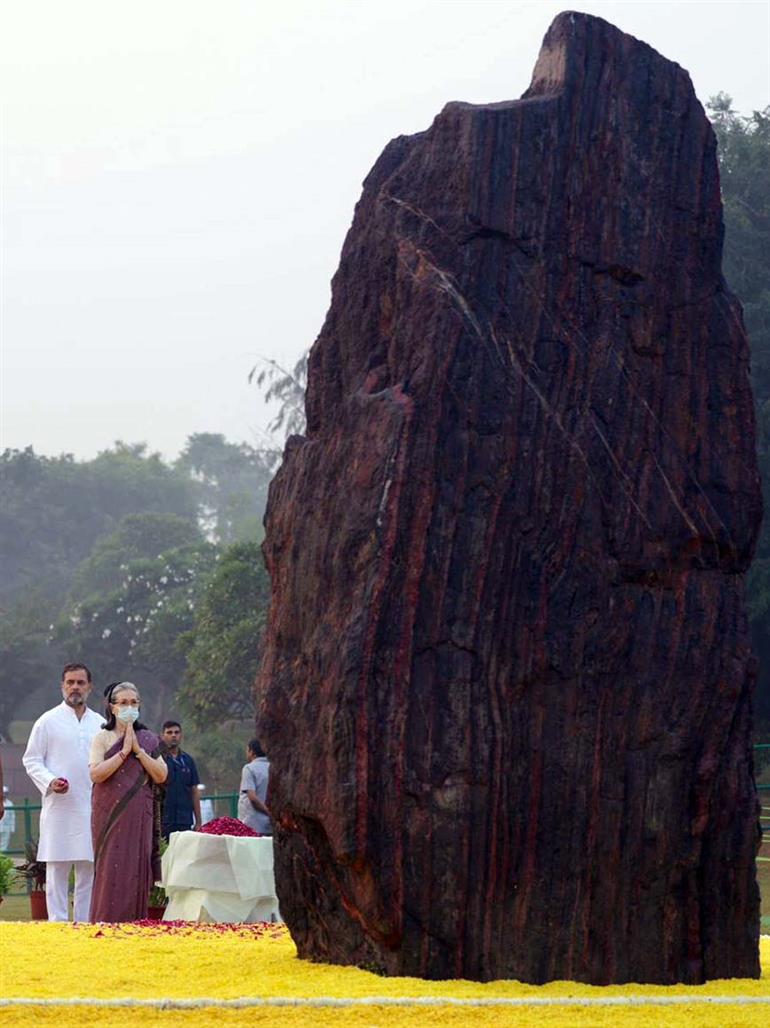 New Delhi : Leader of the Opposition, Lok Sabha, Rahul Gandhi and Congress Parliamentary Party Chairperson Sonia Gandhi paid tribute to India's former Prime Minister Indira Gandhi at Delhi's Shakti Sthal on Friday.