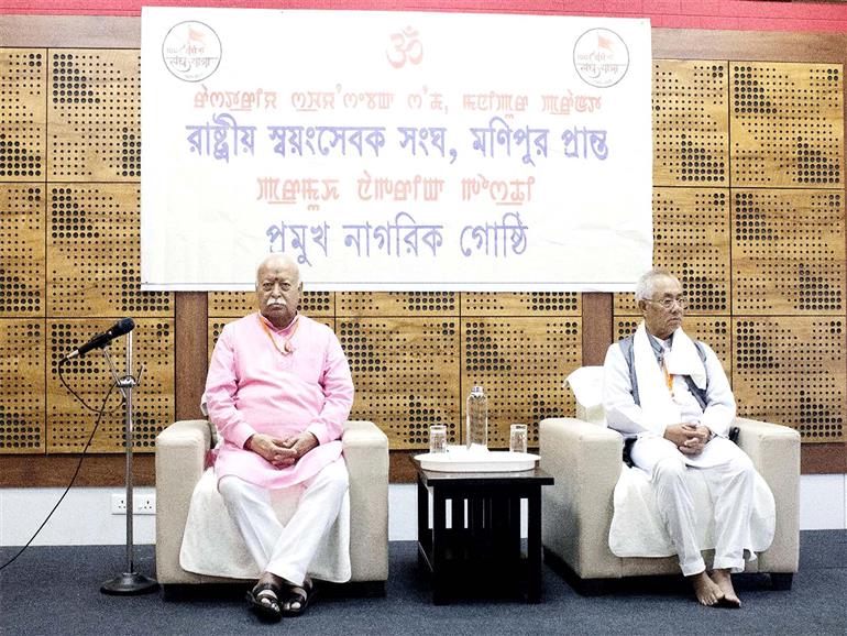 According to the statement, Bhagwat commended Manipur's strong cultural traditions, including the wearing of traditional attire during special occasions and the use of native languages, and encouraged further strengthening of these traditions. Regarding the current situation in the state, he stated that efforts are underway at both the community and societal levels to restore stability.