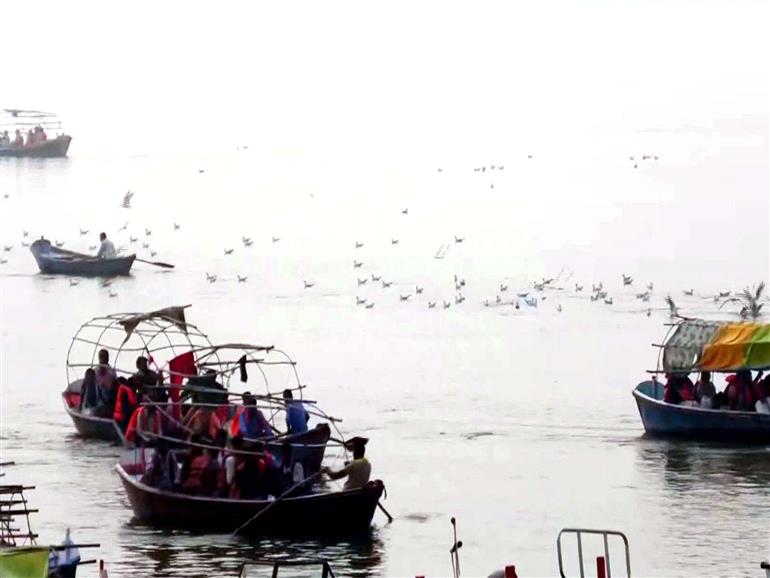 Prayagraj : Thousands of people have started visiting the world-famous Triveni Sangam, a wetland in Prayagraj, to witness the arrival of Siberian birds, a sure sign that the cold season has begun. The large flock of migratory birds has added vibrancy to the Sangam, drawing the attention of both locals and tourists.