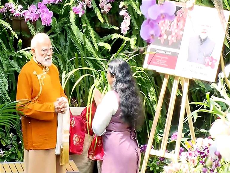 Gangtok : Prime Minister Narendra Modi on Tuesday visited the Orchidarium in Gangtok during his two-day visit to Sikkim, witnessing the state's rich ecological and floral heritage. The Prime Minister was accompanied by Sikkim Governor Om Prakash Mathur and Chief Minister Prem Singh Tamang during the visit.