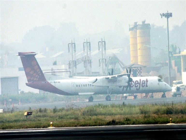 The SpiceJet Q400 aircraft reported a technical issue, prompting a full emergency to be declared at the airport as a precaution. The plane landed safely at 3:51 pm on Runway 27, and all passengers and crew were safe.