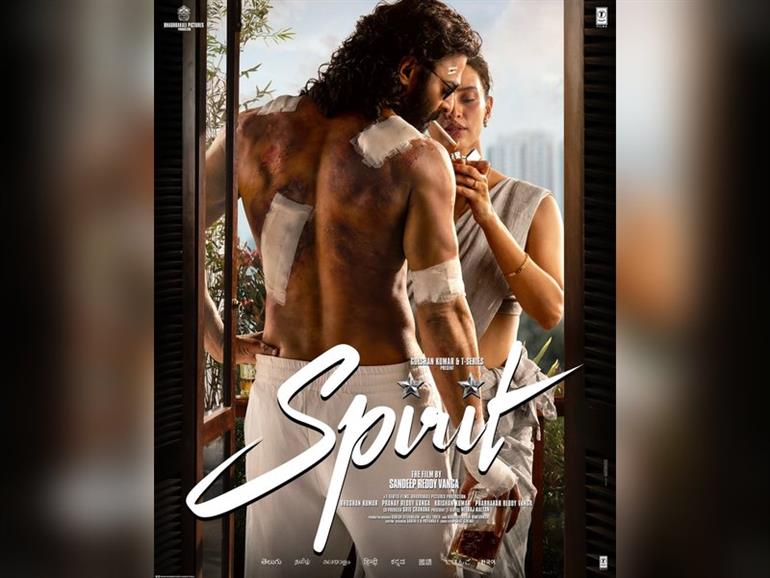 A bare-chested Prabhas posed in off-white pants and dark glasses with a bottle of liquor in his hands. Triptii, on the other hand, wore a beige attire, along with a gold bangle on her right wrist. Sharing the primary look of "Spirit" on social media, Sandeep Reddy Vanga wrote "INDIAN CINEMA.... witness your AJANUBAHUDU / AJANUBAHU Happy New Year 2026 (sic)."