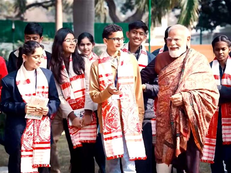 During the interactive session, PM Modi engaged in a lively conversation with students, addressing issues ranging from exam stress and time management to leadership, wellness and pursuing dreams. Later, students sang self-composed songs before PM Modi.